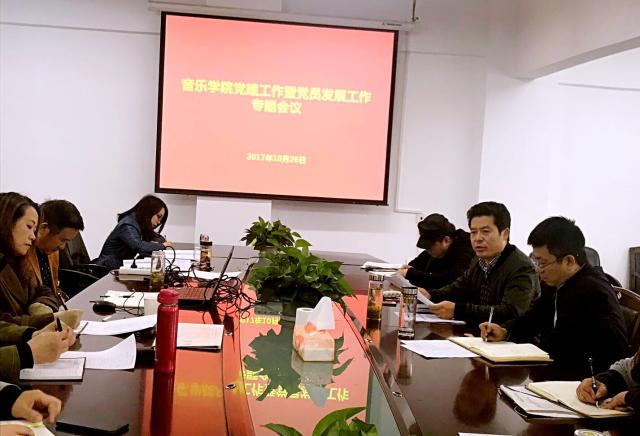 10月26日下午,音樂學院黨委在學院第二會議室召開了“音樂學院黨建工作暨黨員發(fā)展專題會議”。會議由院黨委書記范斌同志主持,院黨委副書記張波、院各教工黨支部書記、學生黨支部書記、以及院黨政辦、院團委書記等相關工作部門負責人參加了會議。