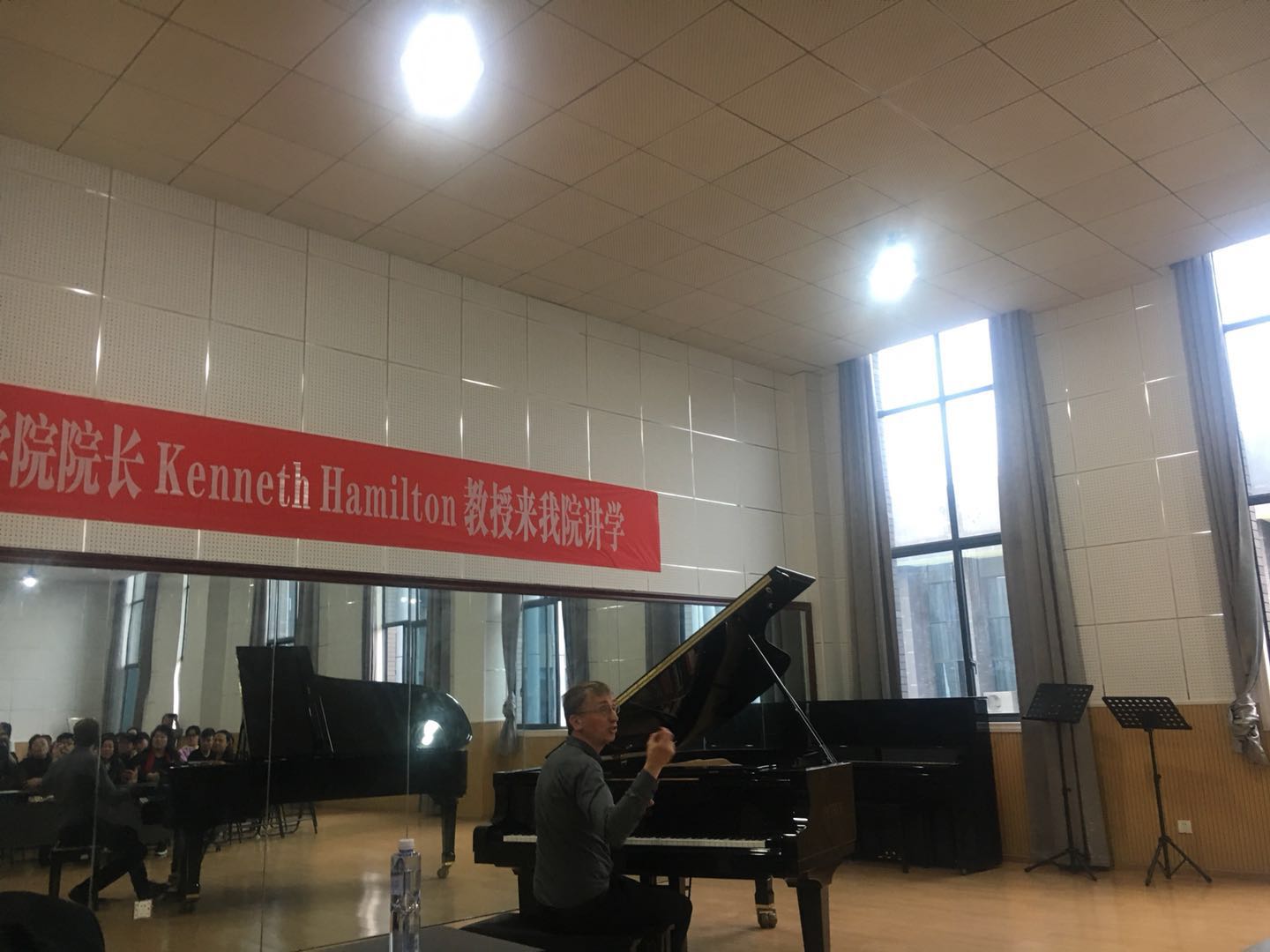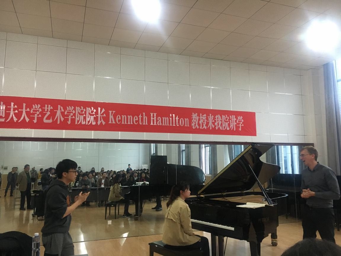 緊接著,Kenneth Hamilton教授與鋼琴教研室諸位老師進行專業(yè)研討;并為我院學生進行了別開生面的公開課教學。在公開課上我院多位鋼琴專業(yè)同學接受了Kenneth Hamilton教授的悉心指導。