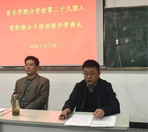 2018年10月18日中午13點(diǎn),貴州大學(xué)音樂學(xué)院在學(xué)院105多媒體教室舉行了音樂學(xué)院分黨校第二十九期入黨積極分子培訓(xùn)班開學(xué)典禮。音樂學(xué)院黨委書記范斌同志,黨委副書記張波同志和本期入黨積極分子87名學(xué)員參加開學(xué)典禮,開學(xué)典禮由學(xué)院黨委組織員、公共藝術(shù)教育中心主任、培訓(xùn)班班主任高琛同志主持。