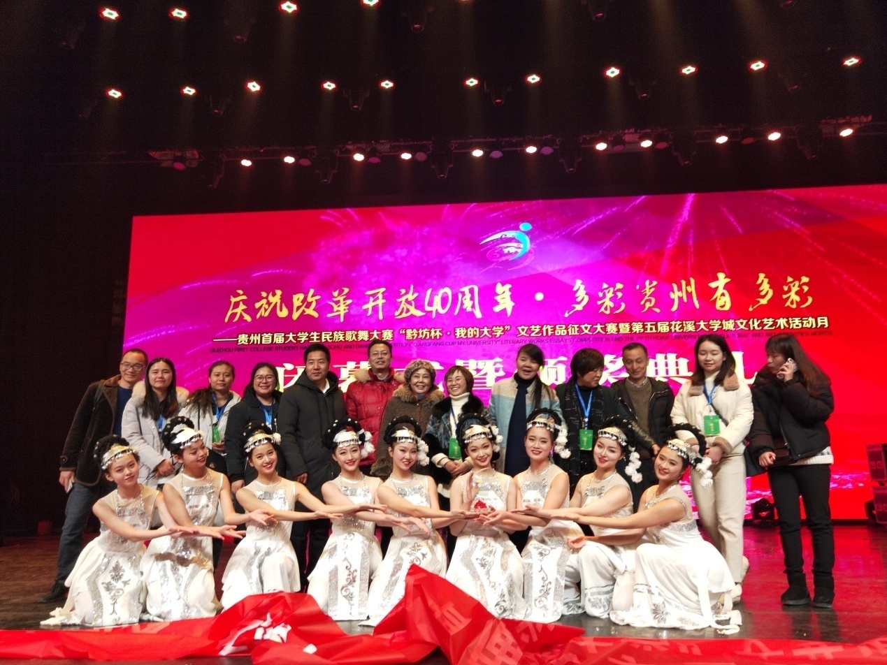 2018年12月12日,“慶祝改革開放40周年·多彩貴州有多彩”貴州首屆大學生民族歌舞大賽頒獎典禮在貴安新區(qū)貴州民族大學隆重舉行。我院選送的由涂元元、張夢柔老師指導的群舞《晨·織韻》在決賽中一拔頭籌,榮獲專業(yè)組一等獎;由蒙曦、吳舒老師指導的獨舞《木偶》以決賽第四名的好成績榮獲專業(yè)組三等獎。此外,由周宇老師指導的獨舞《紅玉丹心》,劉旻旻老師指導的群舞《銀塑》,鄭榮榮、帥瑞虎老師指導的群舞《布衣者》也以優(yōu)異的成績榮獲專業(yè)組優(yōu)秀獎。