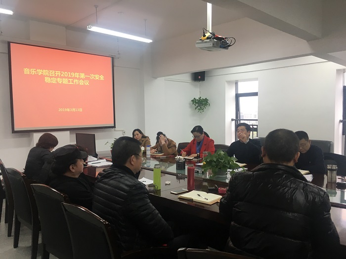 2019年3月13日上午,音樂(lè)學(xué)院在學(xué)院802會(huì)議室召開(kāi)“音樂(lè)學(xué)院2019年第一次安全穩(wěn)定工作會(huì)議”。出席會(huì)議的有學(xué)院黨委書(shū)記范斌同志,副書(shū)記張波同志,學(xué)院各系部書(shū)記及各科室負(fù)責(zé)人。會(huì)議由學(xué)院黨委書(shū)記范斌同志主持。