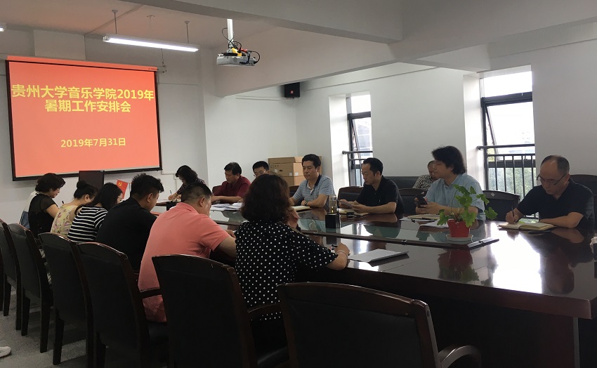 2019年7月31日,音樂學院在學院802會議室,召開2019學年暑假工作安排會議。學院黨政領(lǐng)導、各系部科室黨政負責人參加會議。