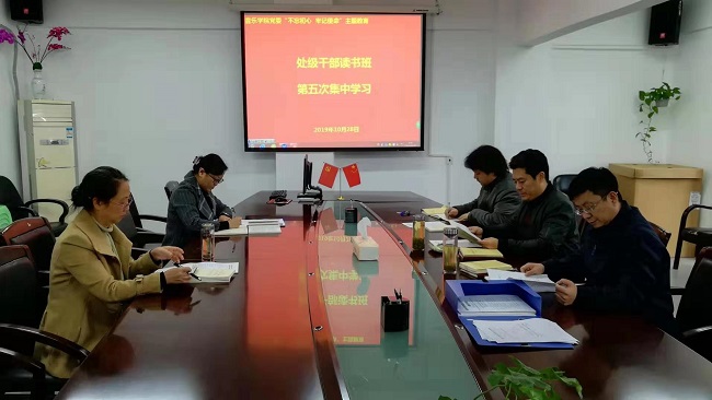 2019年10月28日上午9:30,音樂學院黨委“不忘初心 牢記使命”主題教育處級干部讀書班第五次集中學習會,在學院802會議室舉行。學院全體處級干部、黨委委員、組織員、主題教育辦公室成員參加了讀書班的學習。