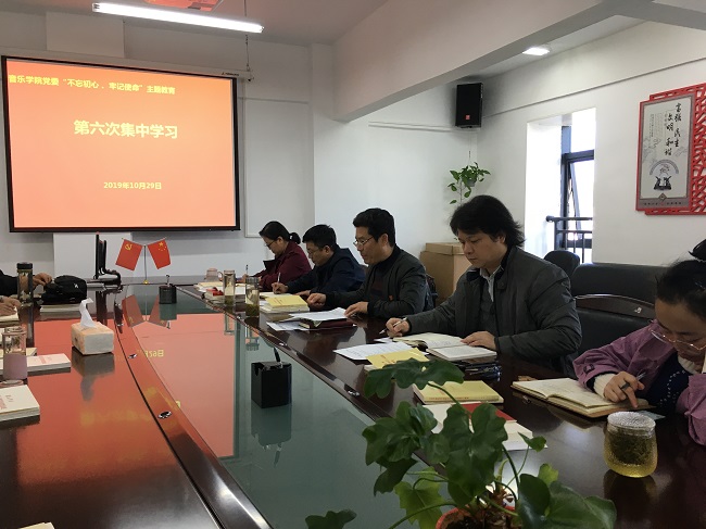 2019年10月29日下午2時,音樂學院黨委在學院802會議室,召開“不忘初心 牢記使命”主題教育黨委中心組理論學習(擴大)第六次專題學習。學院在職處級干部、院黨委委員、組織員、院各基層黨支部書記、副書記參加了會議。黨委書記范斌同志主持會議。