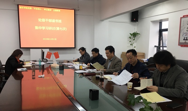 2019年11月6日下午3:00,音樂學院黨委在學院802會議室,召開處級干部讀書班第七次集中學習研討會,會議由院黨委書記范斌同志主持,學院在職處級干部、院黨委委員、學院黨政辦、主題教育辦相關同志參加會議。