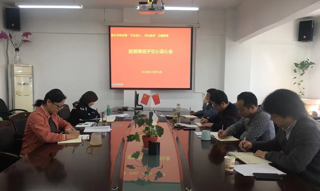 2019年10月31日上午9:30,音樂學(xué)院黨委在院802會(huì)議室,召開院領(lǐng)導(dǎo)班子成員談心談話會(huì)。院黨委領(lǐng)導(dǎo)班子成員、黨委委員、學(xué)院黨政辦和學(xué)院主題教育辦公室相關(guān)同志參加了會(huì)議。談心談話會(huì)由院黨委書記范斌同志主持。