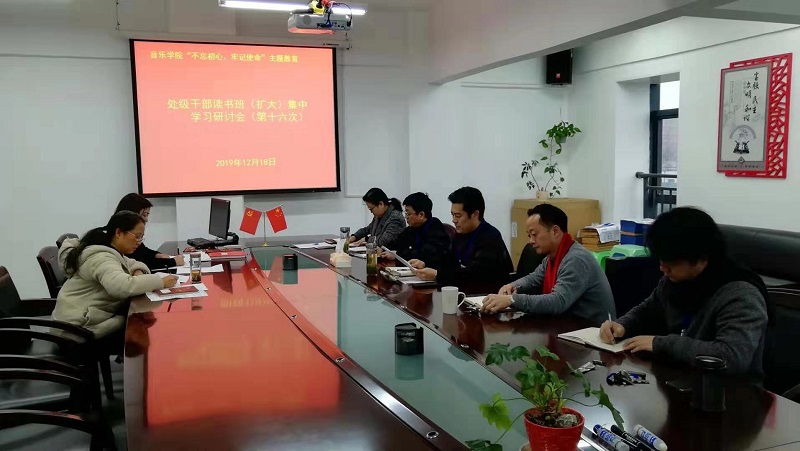 2019年12月18日上午10:00,音樂學(xué)院黨委在學(xué)院802會(huì)議室,舉行處級(jí)干部讀書班(擴(kuò)大)集中學(xué)習(xí)研討(第16次)會(huì)議,學(xué)院在職處級(jí)干部、黨委委員、院主題教育辦成員參加了學(xué)習(xí)研討會(huì),院黨委書記范斌同志主持會(huì)議。