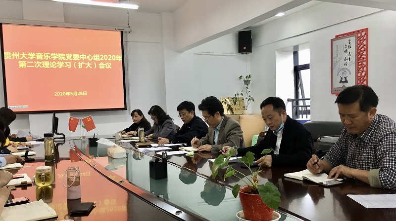 2020年5月28日上午10:00,音樂學院在802會議室召開音樂學院黨委中心組2020年第二次理論學習(擴大)會議。院領導、黨委委員、院屬各職能部門負責人、教學系(部)書記、副書記參加了學習。