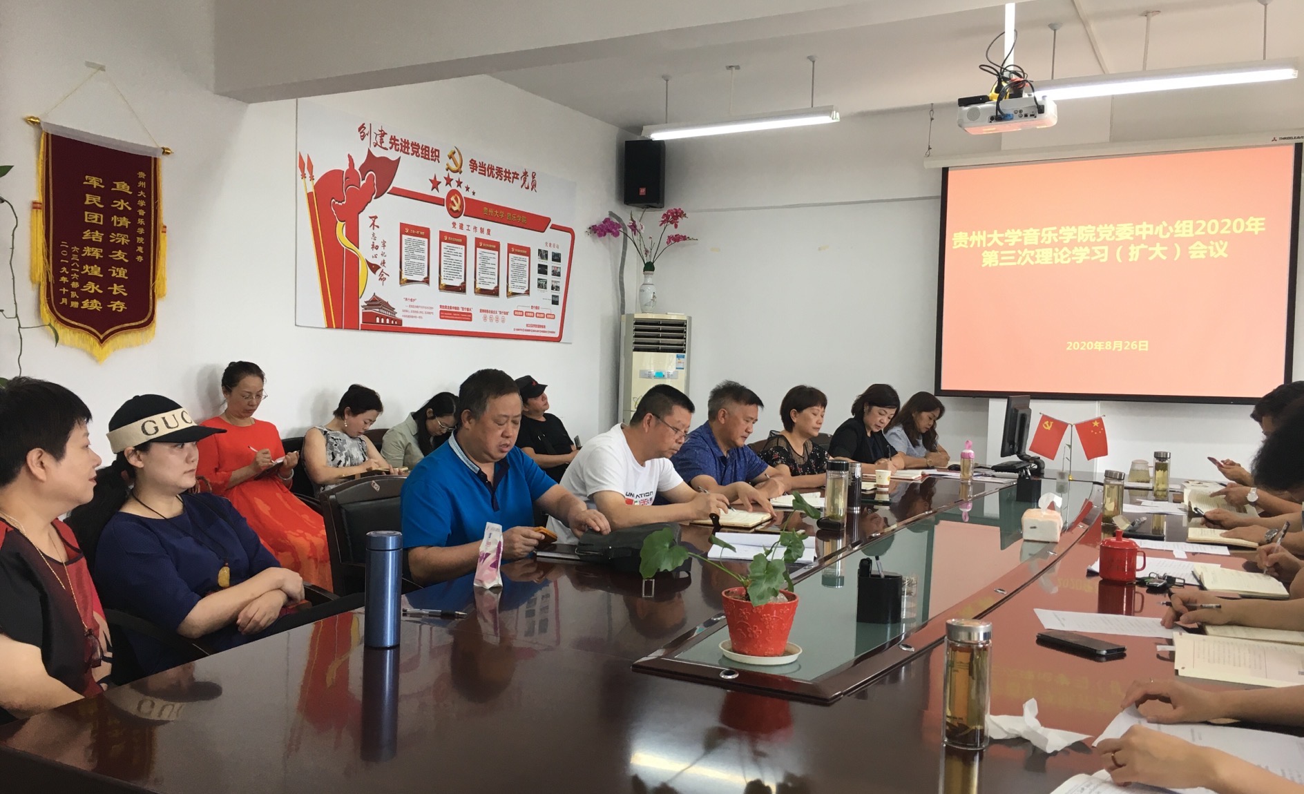 2020年8月26日上午9:30,音樂學院黨委中心組2020年第三次理論學習(擴大)會議,在學院802會議室召開。學院黨政領導、黨委委員、院各職能部門、教學系(部)黨政負責人參加了會議。黨委書記范斌同志主持會議。