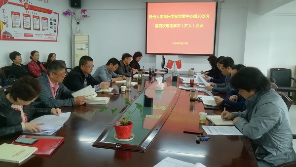 2020年9月24日上午10:00,音樂學院黨委中心組2020年第四次理論學習(擴大)會議,在學院802會議室召開。學院黨政領導、黨委委員、院各職能部門、教學系(部)黨政負責人參加了會議。黨委書記范斌同志主持會議。