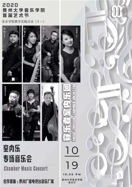 2020年10月19日晚7:30,貴州大學(xué)音樂學(xué)院藝術(shù)節(jié)之“穿樂者”室內(nèi)樂團(tuán)——“穿樂經(jīng)典”系列音樂會在貴州大學(xué)藝術(shù)學(xué)院音樂廳與觀眾見面,藝術(shù)家們以精湛的演奏、飽滿的感情帶領(lǐng)大家品味了多首室內(nèi)樂名曲。