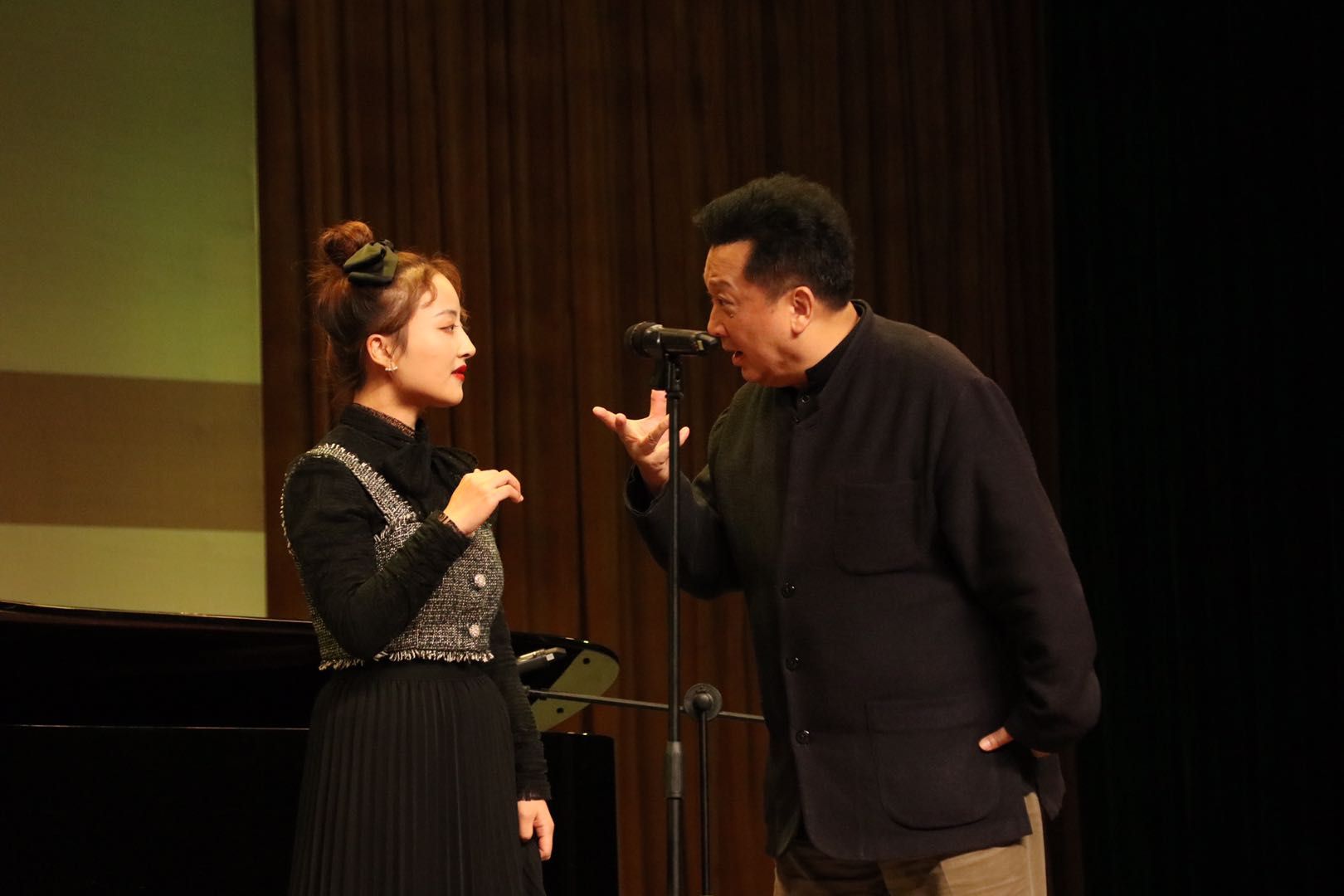 在這場大型公開課上,郁鈞劍教授以現場教學的方式,對同學們進行了一對一的指導。在郁鈞劍教授的現場指導下,同學們演唱出來的效果有了明顯的對比和提升。現場掌聲陣陣,氣氛十分熱烈。