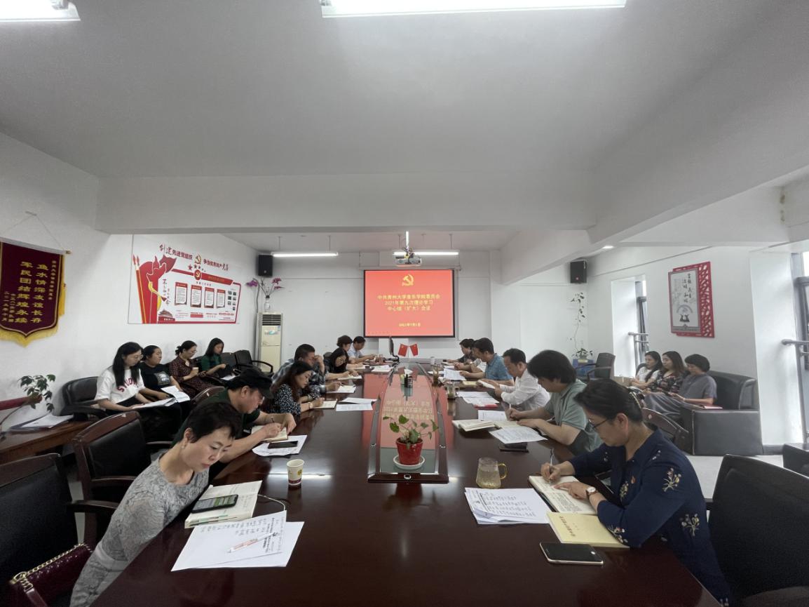 2021年7月1日上午10:30,音樂學院在802會議室召開2021年第九次黨委理論學習中心組(擴大)會議。音樂學院黨委書記范斌、院長穆維平、黨政領(lǐng)導班子成員,各黨支部書記、各系部科室負責人、學院專題教育工作組成員參加了會議。