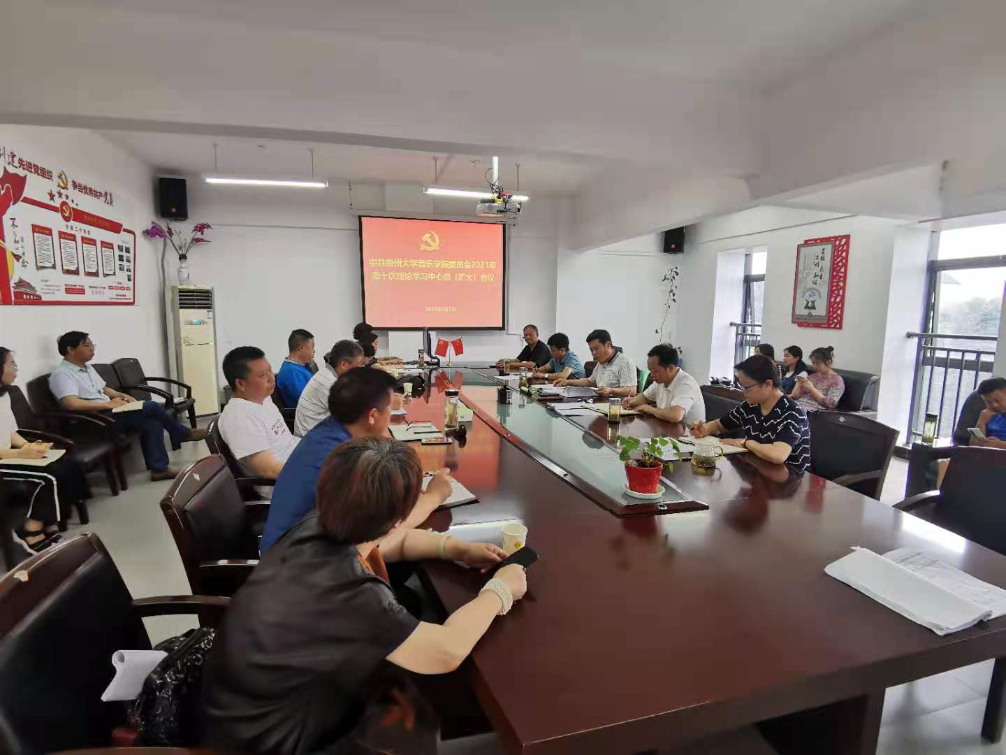 2021年7月7日上午10:40,音樂學院黨委在802會議室召開2021年第十次理論學習中心組(擴大)會議。音樂學院黨委書記范斌、院長穆維平、黨政領導班子成員,各黨支部書記、系部科室負責人、學院專題教育工作組成員出席會議。
