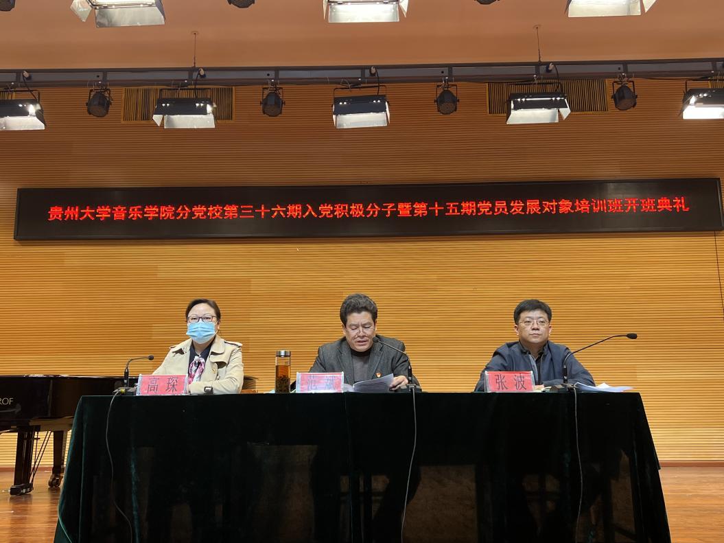 開班典禮在莊嚴的國歌聲中拉開了序幕。音樂學(xué)院黨委委員、組織員、培訓(xùn)班班主任高琛同志傳達了《中共貴州大學(xué)委員會黨校關(guān)于舉辦貴州大學(xué)第三十六期入黨積極分子培訓(xùn)班的通知》(貴大黨校【2022】1號)文件;音樂學(xué)院黨委副書記張波同志傳達了《中共貴州大學(xué)委員會黨校關(guān)于舉辦貴州大學(xué)第十五期黨員發(fā)展對象培訓(xùn)班的通知》(貴大黨校【2022】2號)文件。
