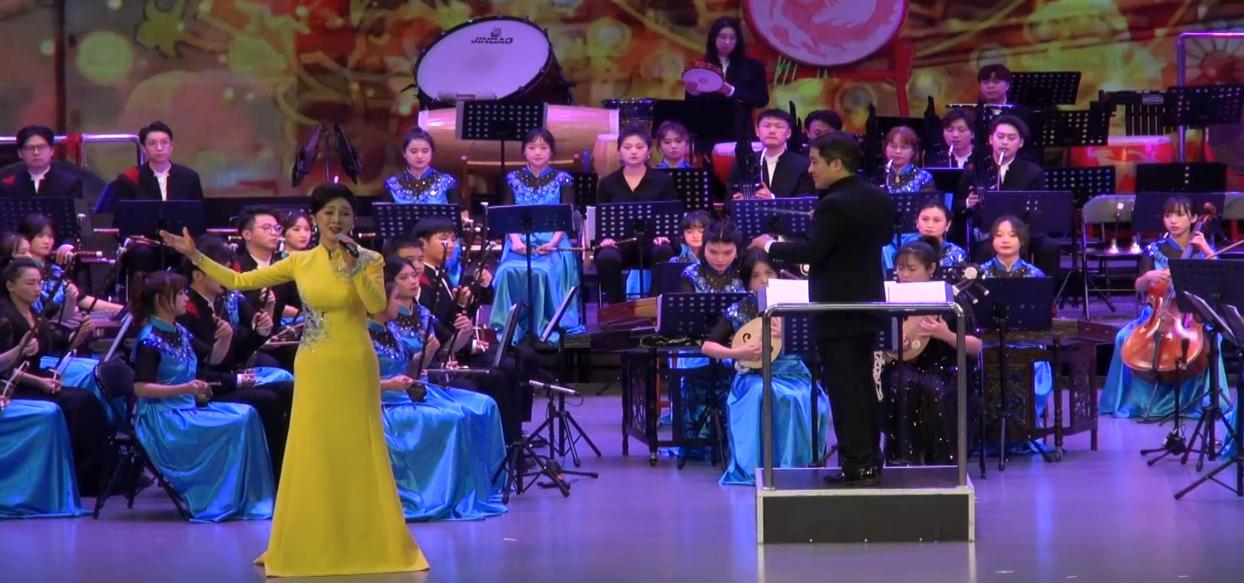 貴州大學音樂學院首次以本院民族管弦樂團為主體呈現(xiàn)本臺龍年大型民族交響新年音樂會,由楊廣擔任指揮。本場音樂會在曲目的選擇上分為三個部分“扎根貴州,聚焦民族民間——民族管弦樂音畫《端節(jié)》、蘆笙合奏《達亨嘎》、侗族琵琶歌《單身羅漢快樂多》;經(jīng)典作品,龍騰虎躍千家喜——民族管弦樂合奏《春節(jié)序曲》、《龍騰虎躍》、嗩吶獨奏《百鳥朝鳳》、竹笛獨奏《小放牛》、獨唱《一杯美酒》;音樂思政,豐富音樂教育內(nèi)涵——民族管弦樂合奏《七彩之和--綠·風之歌》、《春華秋實》、《我和我的祖國》、二胡獨奏《紅梅隨想曲》”。