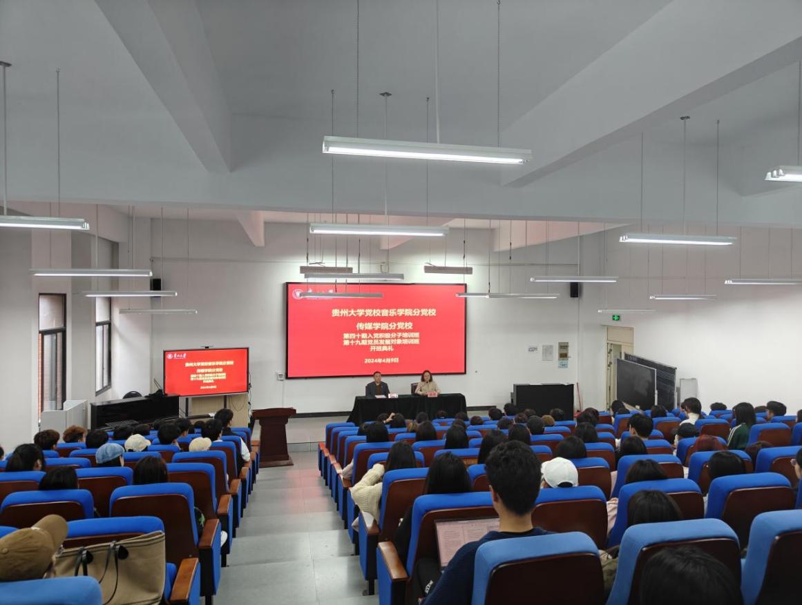2024年4月9日中午13:00,貴州大學(xué)音樂學(xué)院在韻正樓106多媒體教室舉行了“貴州大學(xué)黨校音樂學(xué)院分黨校、傳媒學(xué)院分黨校第四十期學(xué)生入黨積極分子培訓(xùn)班暨第十九期黨員發(fā)展對(duì)象培訓(xùn)班開班典禮”。音樂學(xué)院黨委副書記馬超同志、音樂學(xué)院黨委委員、副處級(jí)組織員高琛同志以及全體入黨積極分子和黨員發(fā)展對(duì)象100余人參加了開班典禮,開班典禮由音樂學(xué)院學(xué)生科輔導(dǎo)員同時(shí)也是本期培訓(xùn)班班主任先久坤同志主持。