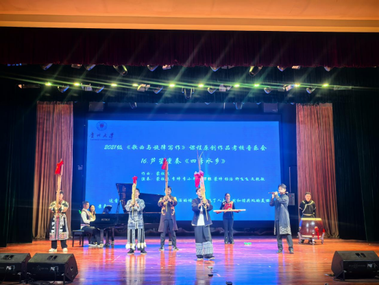據(jù)悉,貴州大學(xué)音樂學(xué)院“音樂表演”專業(yè)自獲批國家級一流本科專業(yè)建設(shè)點以來,始終堅持以人才培養(yǎng)為核心,以教學(xué)改革為動力,不斷提升教學(xué)質(zhì)量和科研水平。此次原創(chuàng)作品匯報作為音樂創(chuàng)作課程的創(chuàng)新實踐,在課程方向上有了極大的突破,讓更多人看到了貴大學(xué)子的創(chuàng)作力、實踐力、組織力。