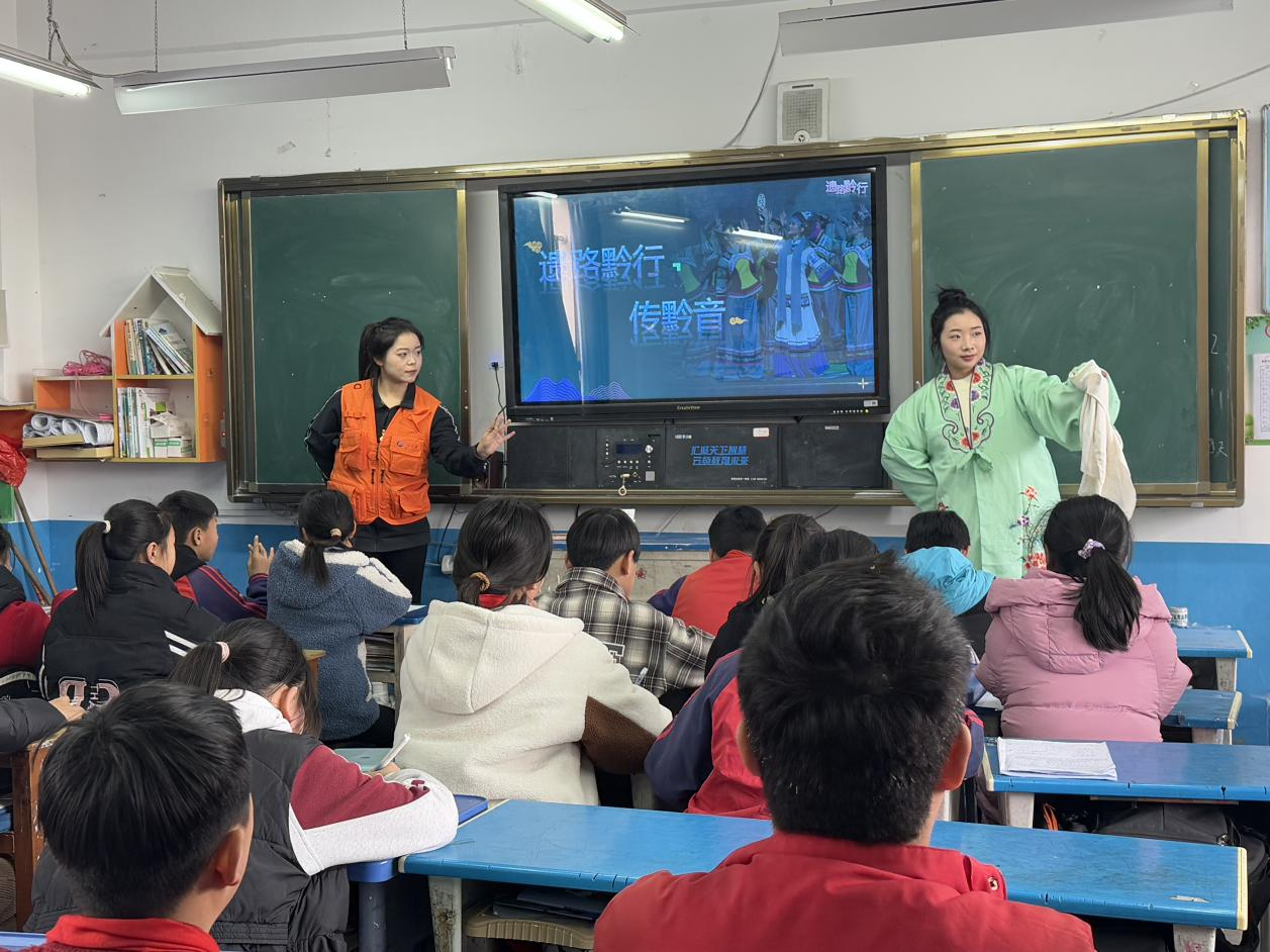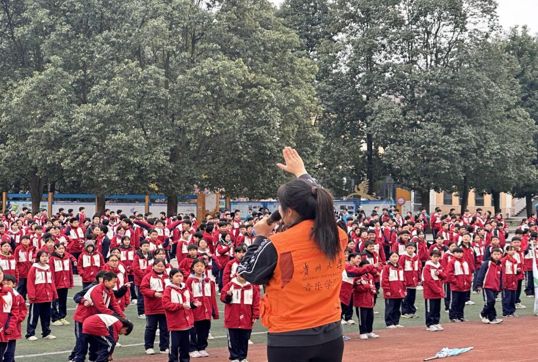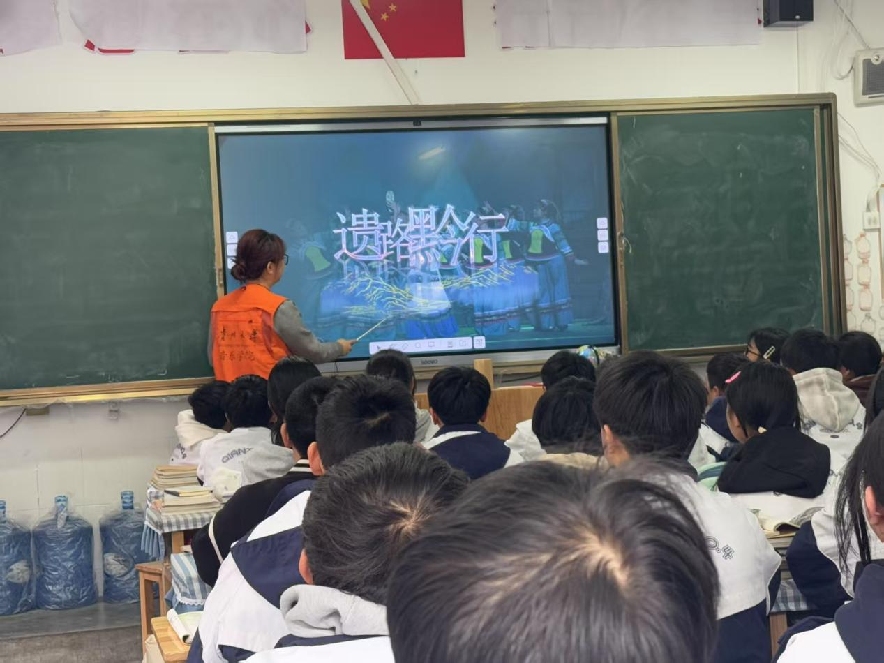 2025年3月17日,貴州大學(xué)音樂學(xué)院組織碩士研究生和來自貴州大學(xué)體育學(xué)院的本科生組成“遺路黔行”黔劇傳承團(tuán)隊(duì)來到黔西市,開展了國家級(jí)非遺項(xiàng)目“黔劇”的宣傳及調(diào)研,在黔西市部分城鄉(xiāng)學(xué)校開展了黔劇宣講課堂,并教授“黔劇課間操”。